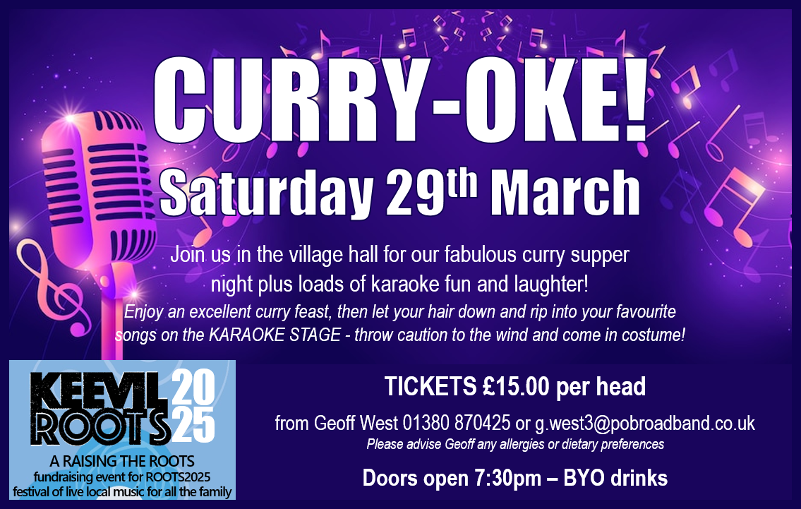 That’s all for now folks – find us on Facebook for real-time discussions on Keevil Village, marketplace on For Sale, Free or Wanted in Keevil, or wander down memory lane on Keevil Memories… thank you for all your support, and if you have any news, pictures or stories to share, don’t hesitate to get in touch