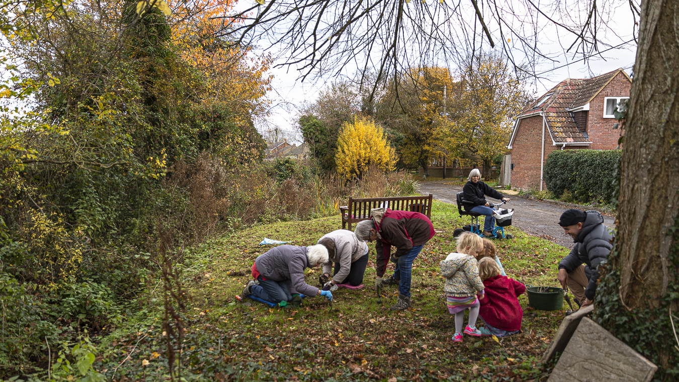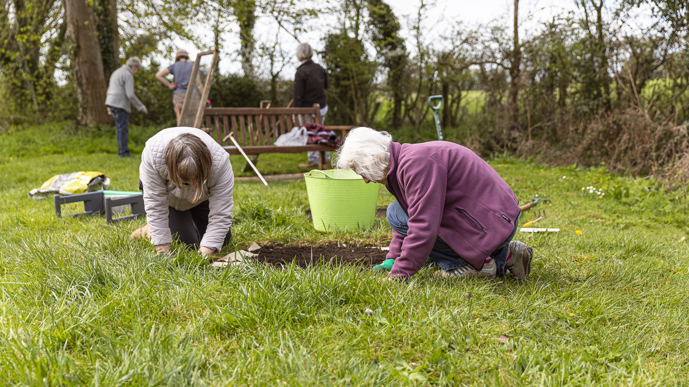 Sixty native bluebell bulbs, primroses and some foxgloves have been planted in the shady area under the tree. Two of the younger Keevil residents were on hand to provide much appreciated assistance. There are plans for more wildflowers in the spring.